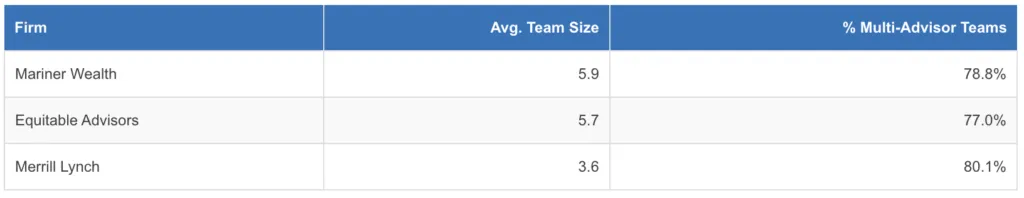 Firms like Mariner Wealth and Equitable Advisors have aggressively built high-density teams, often through acquisitions, tuck-ins, or career-pathing programs that reward team integration.