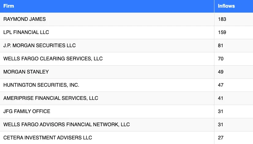 - Raymond James with 183 advisor additions
