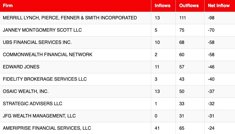 Top Firms by Net Advisor Outflows January 2026
