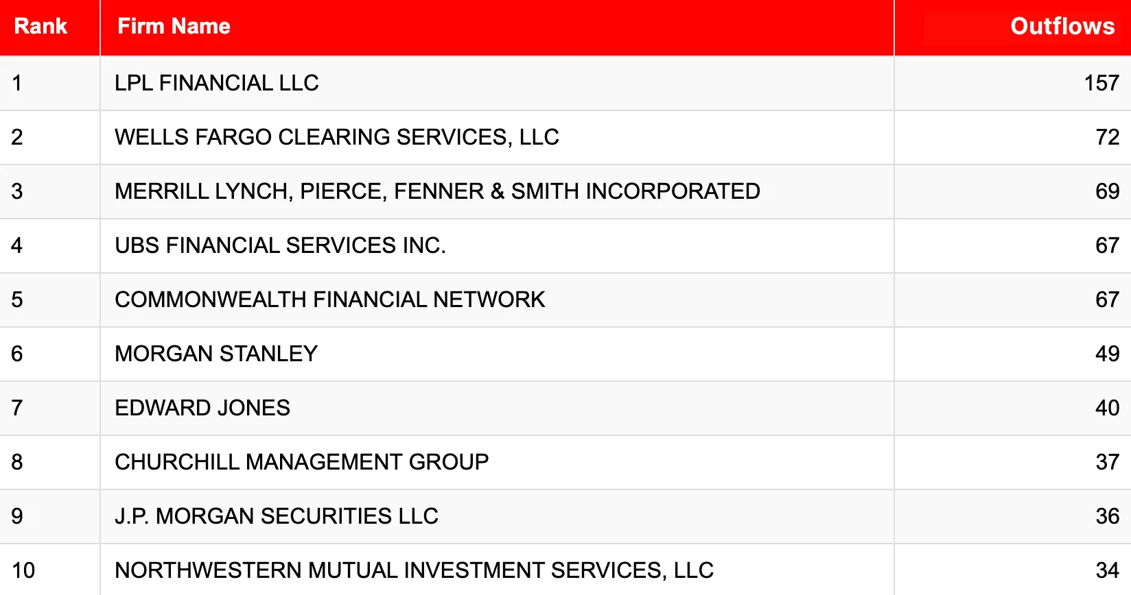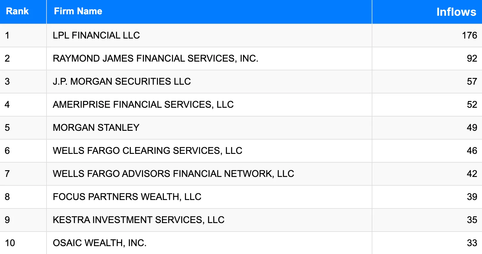 UBS and Commonwealth round out the list, reflecting the broader reshuffling across mid- and large-sized firms adapting to changing advisor expectations.