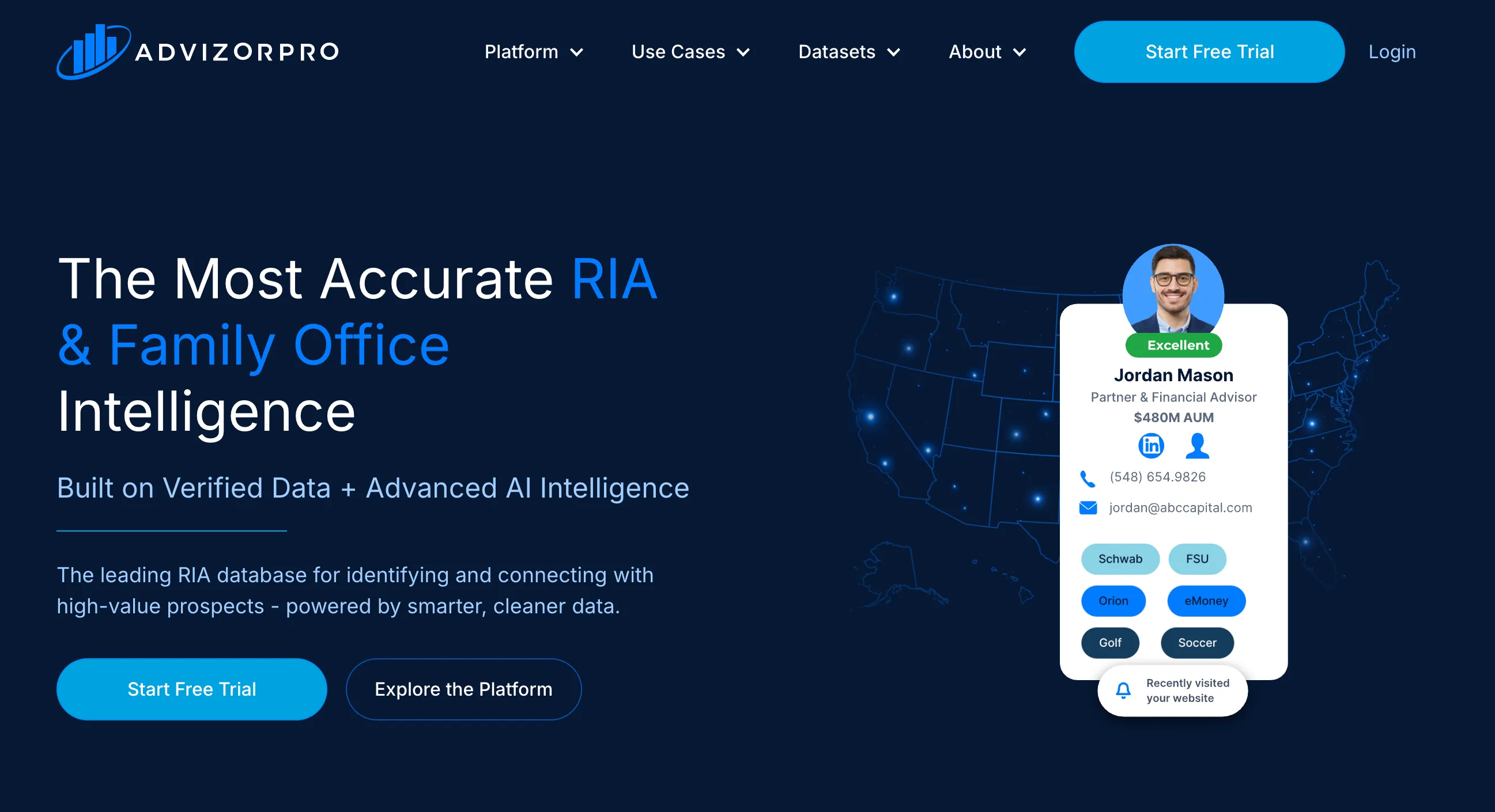 Whether you’re scaling a distribution team, launching a new product, recruiting advisors, or powering a marketing campaign, here’s a breakdown of the top RIA data platforms in the market—and why more firms are switching to AdvizorPro.