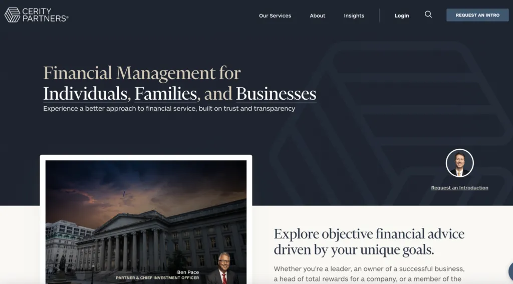 Cerity Partners leverages eMoney to deliver holistic financial planning through a multidisciplinary model that integrates investment, tax, and estate strategies. The firm serves high net worth individuals, businesses, and nonprofits with an emphasis on long-term relationships and ethical advice.