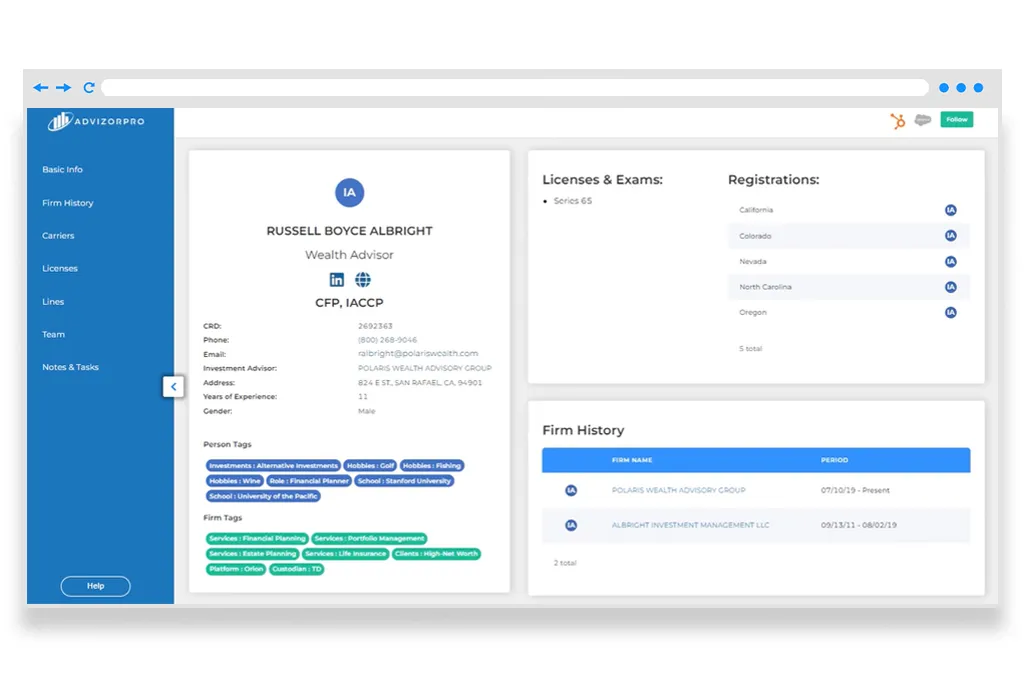 Recruiters, asset managers and fintech platforms can harness this information to identify the best independent advisor partners today and in the future.